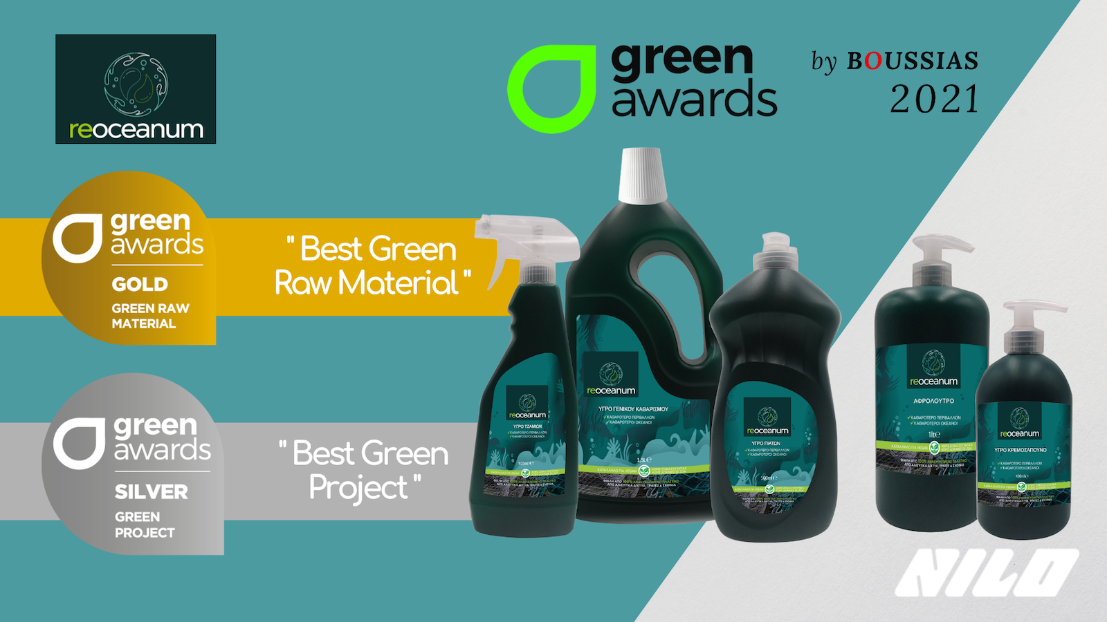 Double awarded in Green Awards 2021, with a GOLD award for “Green raw material of the year” and a SILVER award for “Green Project of the year”, the REOCEANUM product range includes reoceanum Glass Cleaner, reoceanum All-Purpose Cleaner, reoceanum Dishwashing Liquid, reoceanum Liquid Handsoap and reoceanum Shower Gel.