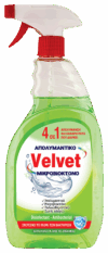 Το Velvet Απολυμαντικό – Μικροβιοκτόνο 4σε1 είναι υγρό απολυμαντικό κατάλληλο για όλες τις επιφάνειες που πλένονται όπως πατώματα, νεροχύτες, μπάνια, λεκάνες, τουαλέτες, βρύσες, τοίχους, πλακάκια, είδη υγιεινής, πάγκους εργασίας τροφίμων, λάντζες, κάδους απορριμμάτων, χώρους κατοικίδιων, μηχανήματα, σωληνώσεις.